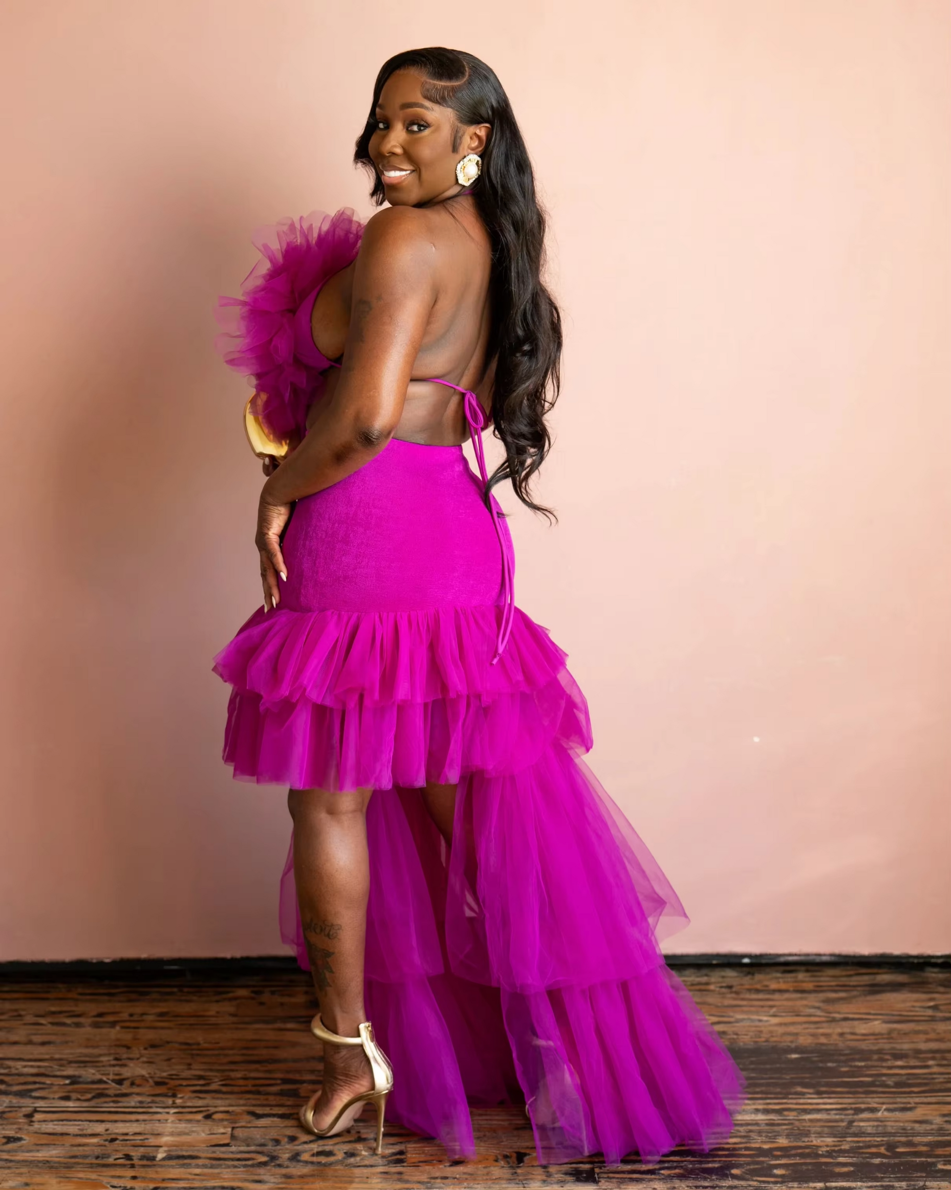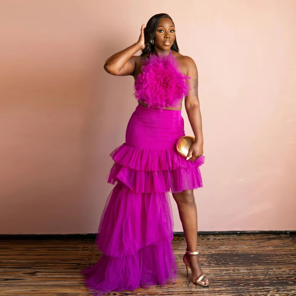 Amazing Fuchsia 2 Pieces Women Maxi Dresses 3D Handmade Flower And Asymmetrical Skirt Women Set Party Dress