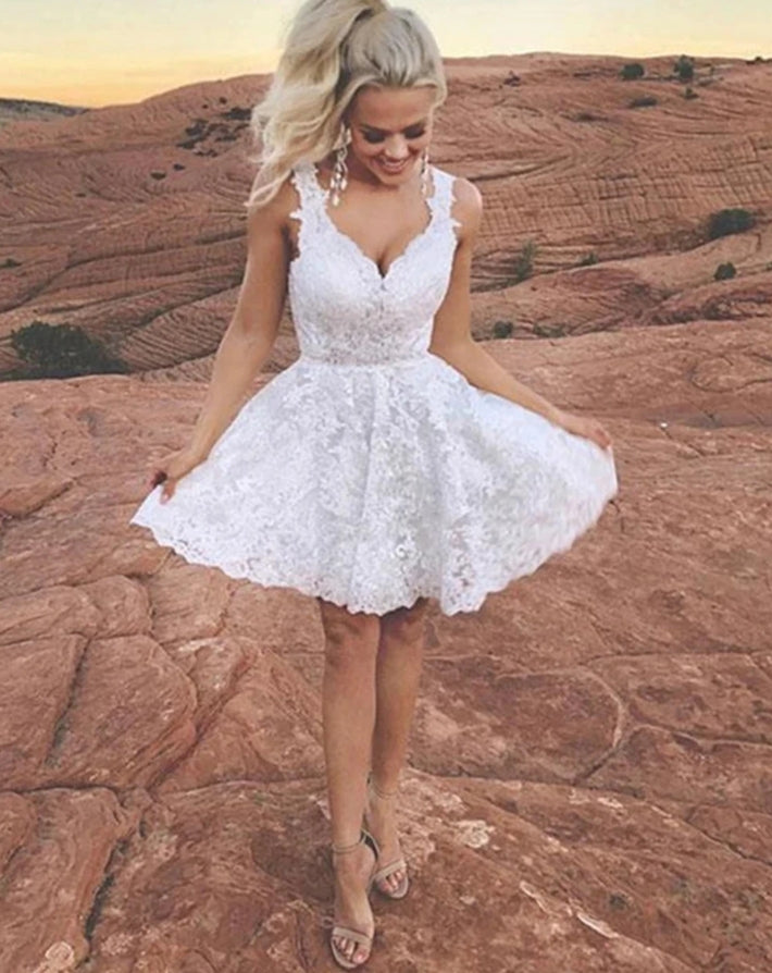 Appliques Deep V-neck Homecoming Dress Bohemian A-line Tank Sleeve Cocktail Party Gown Illusion Vestidos De Novia