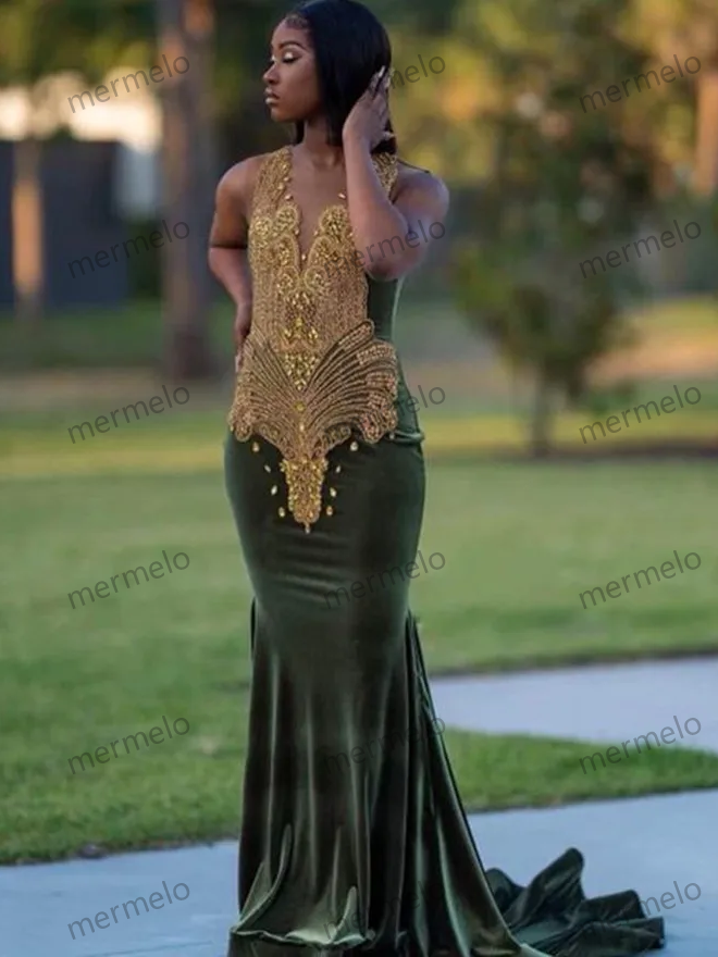 Crystal Diamond Prom Dresses Velvet Mermaid Formal Luxury Evening Gowns Girl Birthday Party Graduation