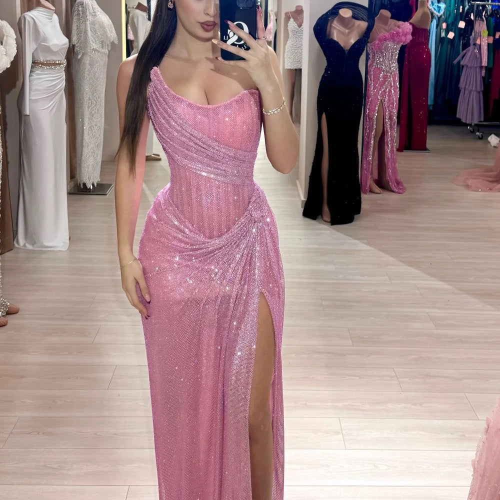 Customized Pink Sequin Side Slit robes de soirée Strapless Backless Sleeveless Party Dresses Floor-Length Prom Dress 2025