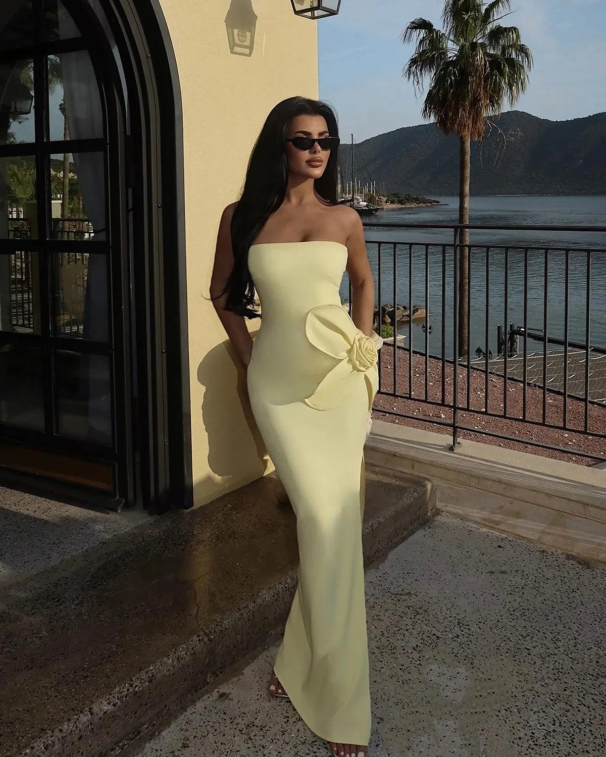 customized Prom Dresses Sheath Muslim Yellow Slit Evening Dress Floor Length Beads Robe De Soiree Formal Party Dress
