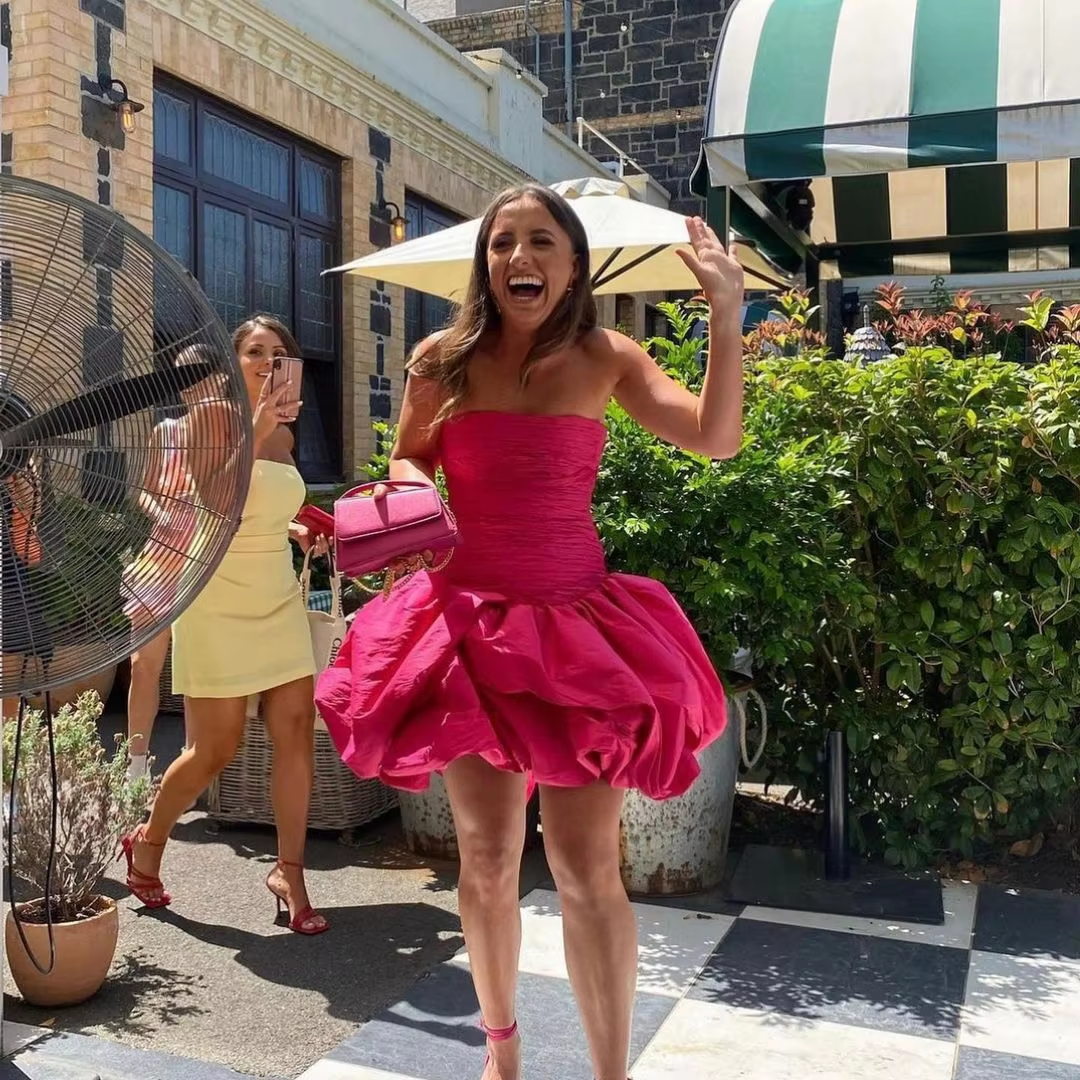 Cute Short Satin Party Dresses Boat Neck Pleated Puffy Mini Length Short Prom Dress Custom Made Chic Evening Gowns Outfits