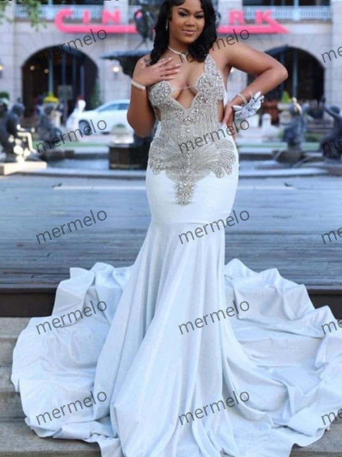 Diamond Silver Prom Dress For Black Girls Sequin Mermaid Party Gala Gowns