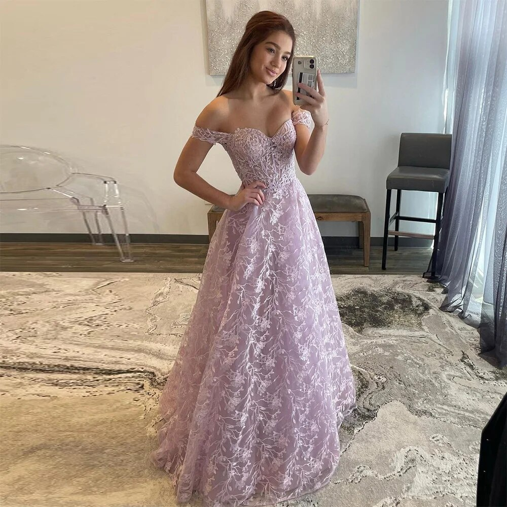 Elegant Appliques Lace Prom Dresses Off the Shoulder A-Line Evening Gown Graduation Party Dress Pageant Gowns