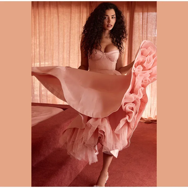 Elegant Midi Dresses Women Fashion Square Neck Sleeveless Backless Dress