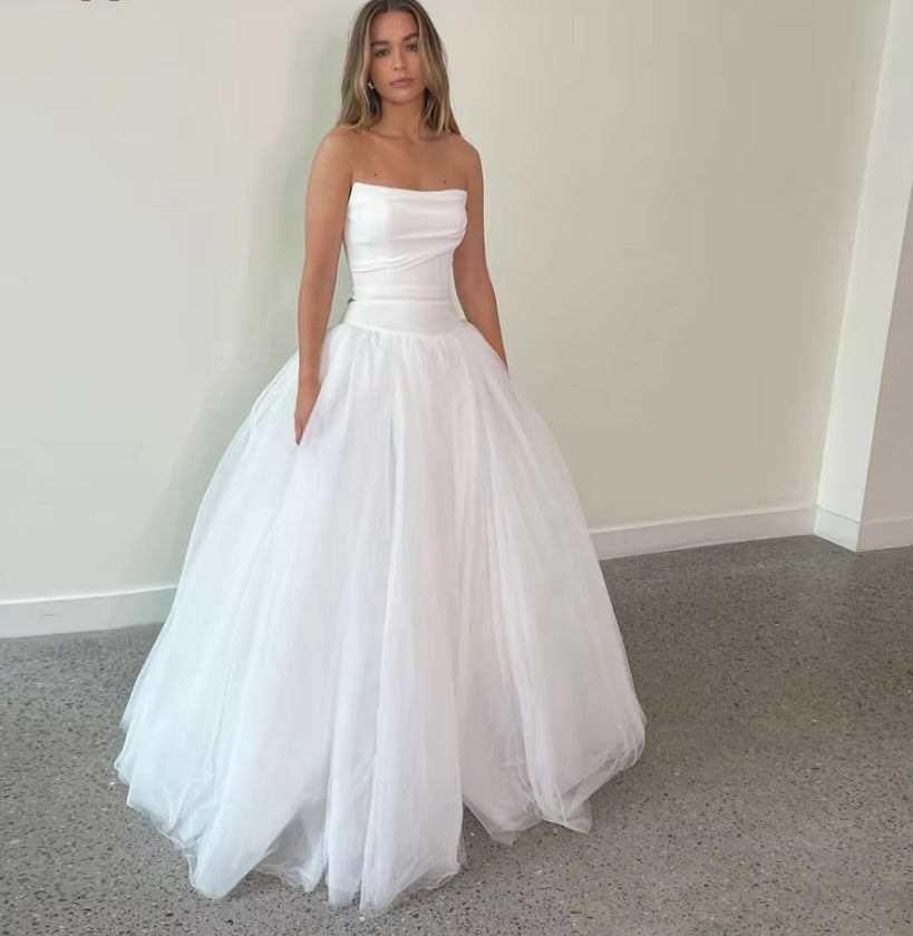 Elegant Tulle A Line Wedding Dresses For Woman 2024 Strapless Sleeveless Bridal Bride Robe Dress Gowns Vestidos De Novia
