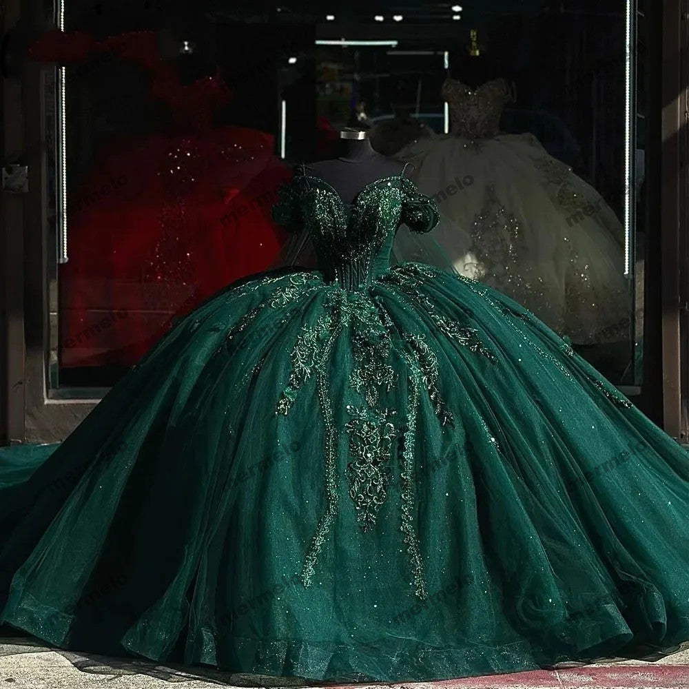 Emerald Green Ball Gown Quinceanera Dresses Off Shoulder