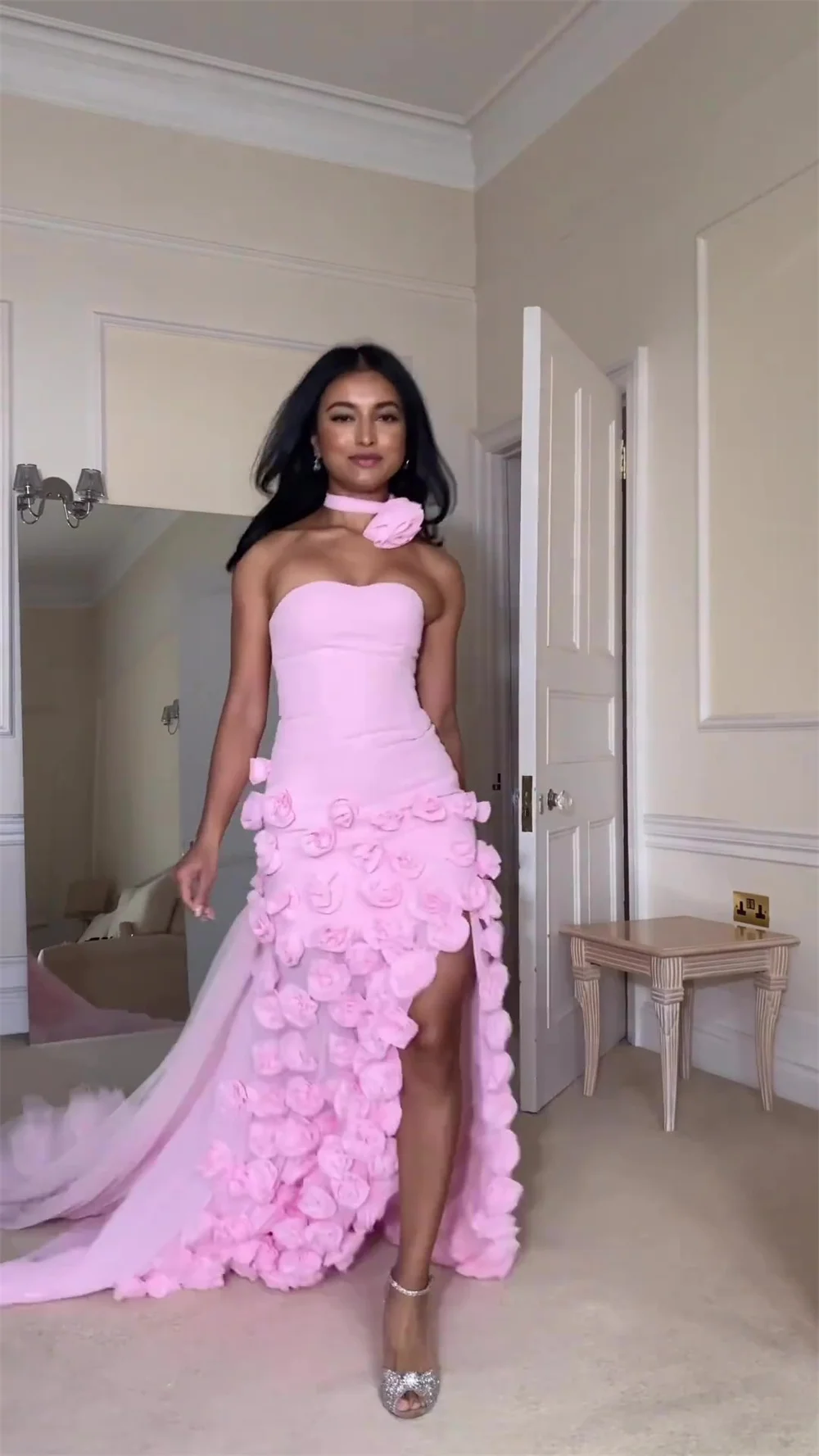 Fashion Halter Mermaid Anke Length Evening Dresses Flower Chiffon Formal Occasion Gown