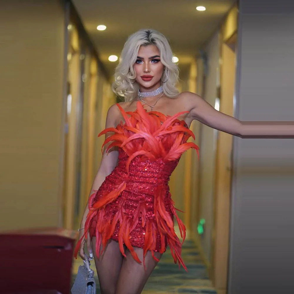 Feathers Short Prom Dresses Strapless Ruffles Sequined Cocktail Party Dress Girls Homecoming Birthday Gowns For Photo Shoots