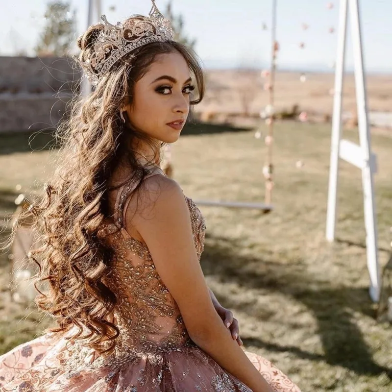 Formal Rose Champagne Quinceanera Dresses Lace Applique Sequin Vestidos De 15 Anos Sweet 16 Ball Gown Prom Dress Lace-up Back