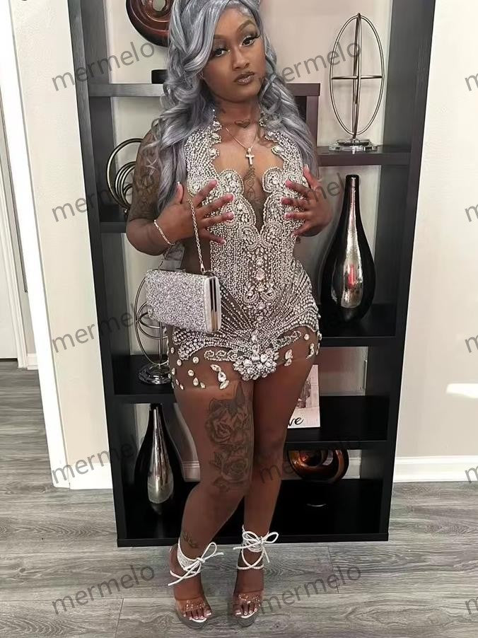 Glitter Bead Crystal Rhinestones Birthday Party Cocktail Senior Homecoming Gown