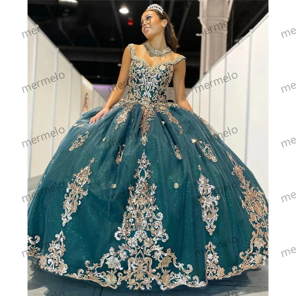 Glittering Quinceanera Dresses Gold Lace Appliques