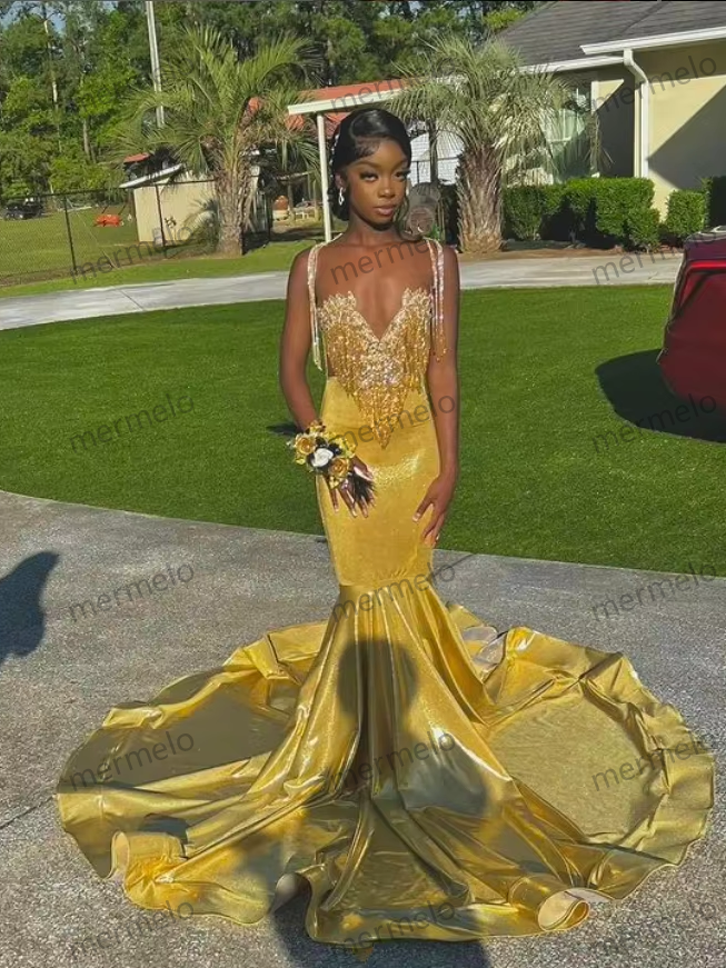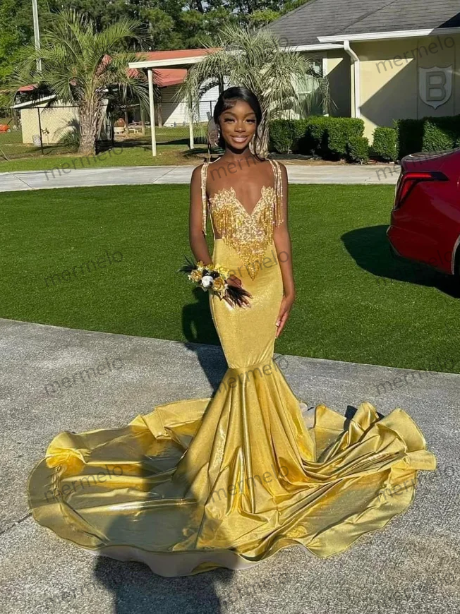 Gold High Luxury Cocktail Dresses New Black Girls Style Tassel Sequins Prom Dresses Sexy Glitter Gowns Party Dresses