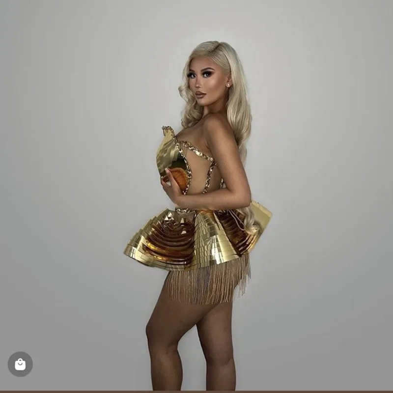 Gold Shinning Sequins Women Sexy 2 Pieces Bodycon Mini Dress Celebrate Birthday Party Performance Costume Stage Wear