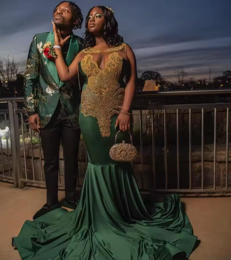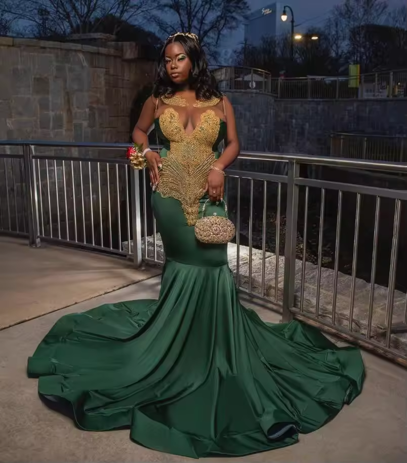 Hunter Green Long Mermaid Prom Birthday Gala Dresses for Black Girl Sparkly Diamond Crystal Evening Party Dress customsized