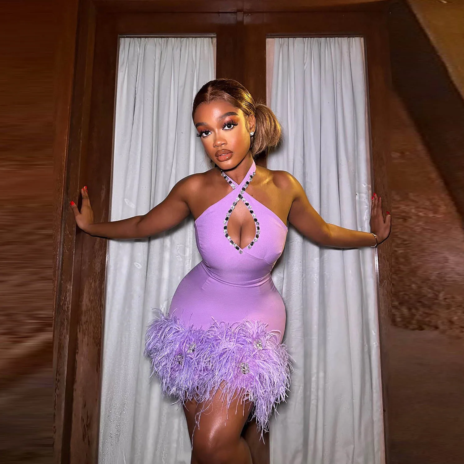 Lavender Sexy Cocktail Dresses Halter Sexy Back Feathers Bottom Mermaid Wmen Party Prom Dress Short Black Girls Homecoming Gowns