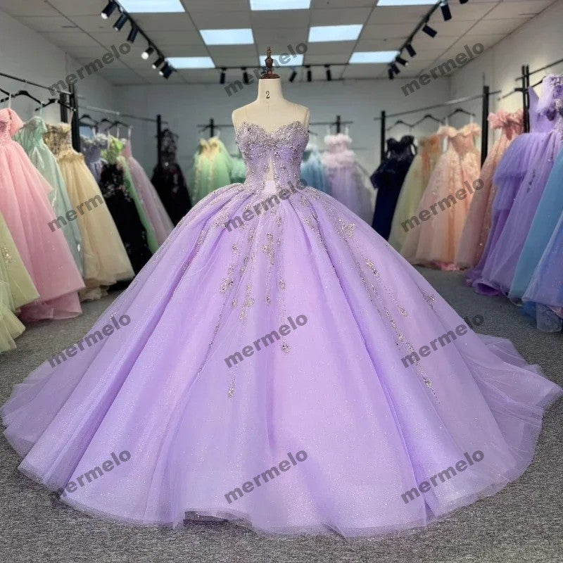 Lilac Sweet 16 Ball Gown Quinnceanera Dresses Sparkly Tulle Beading