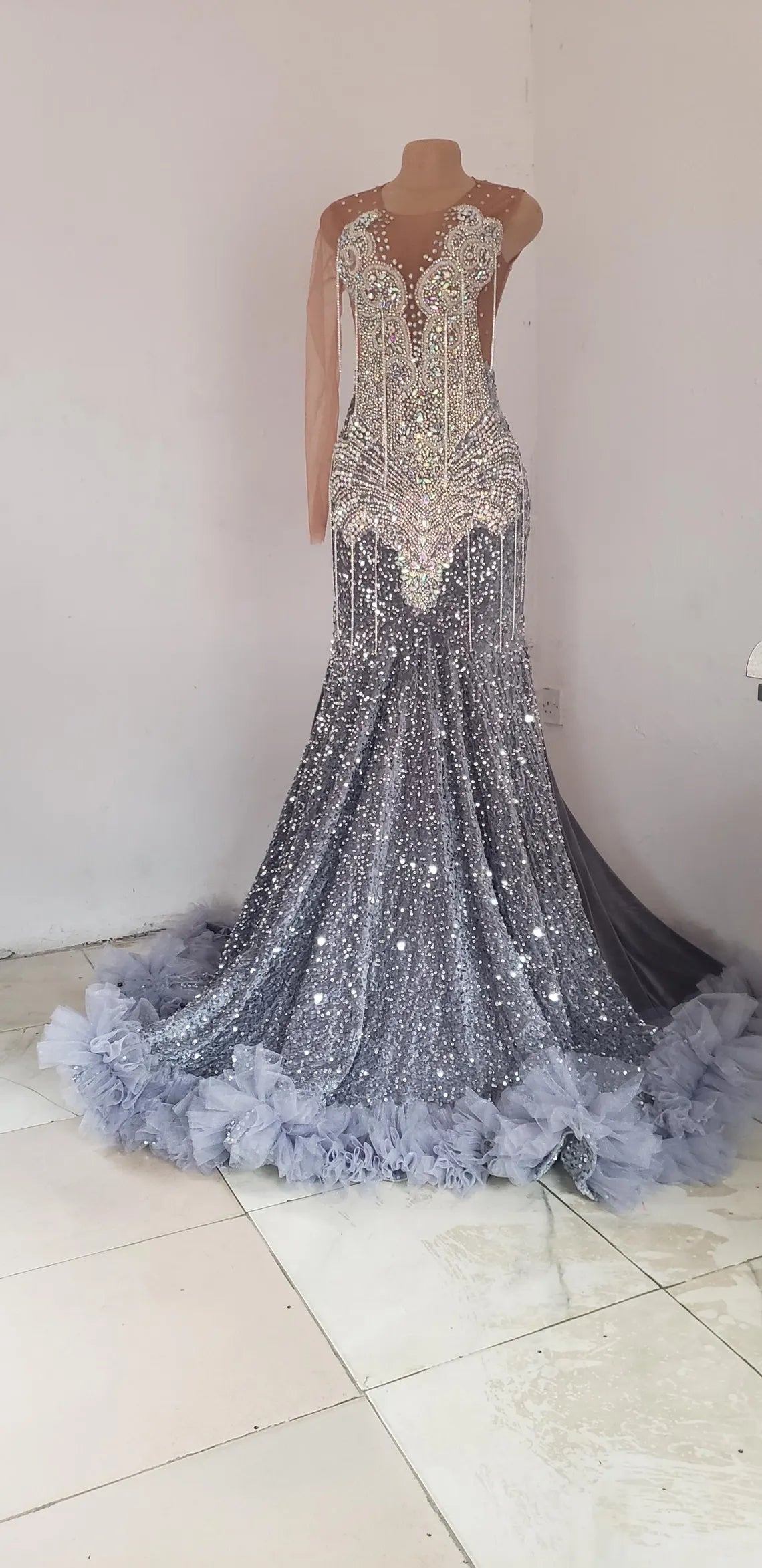 Long Fitted Prom Dresses, Homecoming Dress, Wedding Dress, Black Girl Dress, Reception Dress, Gift For Her, Mermaid Dress, Rhinestone Dress.