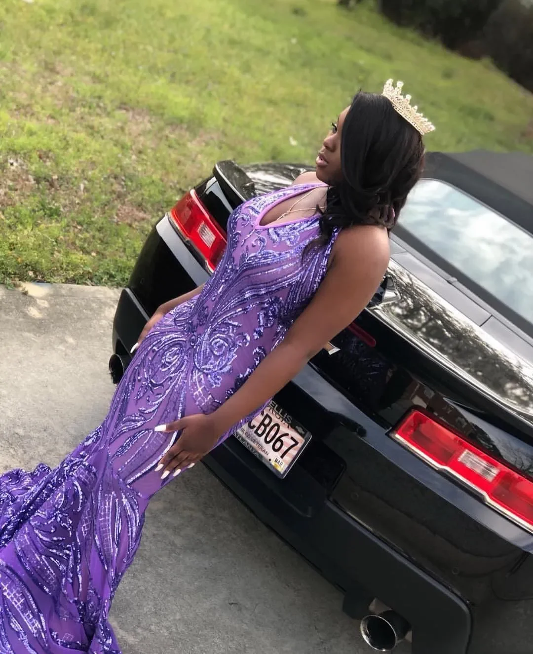 Luxurious Sparkly applique Mermaid ball gown Sexy halter V-neck backless evening dress plus size sweep train formal party dress