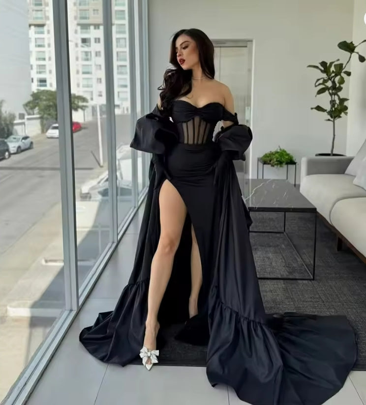 Black Evening Dresses for Women Luxury 2025 Party Gown with Shawl Sexy Sweetheart Illusion Side High Slit Prom Dress Customized