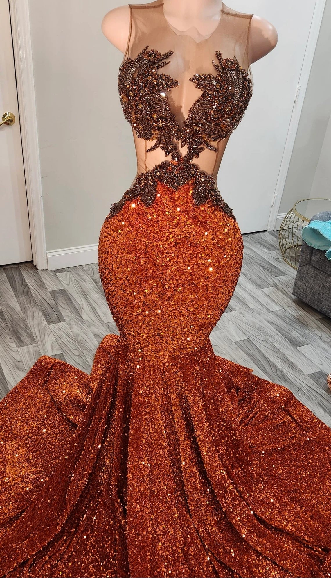 Luxury burnt orange velvet seqins dress,Mermaid dress,Long Reception dress, Black girl dress,Wedding dress,Free shipping