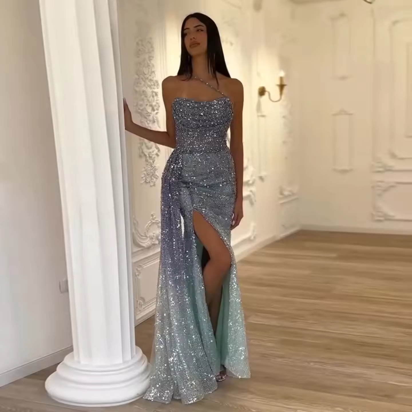 Luxury Ombre Blue Mermaid Evening Dresses with Slit Overskirt Sage Green Long Wedding Party Gowns