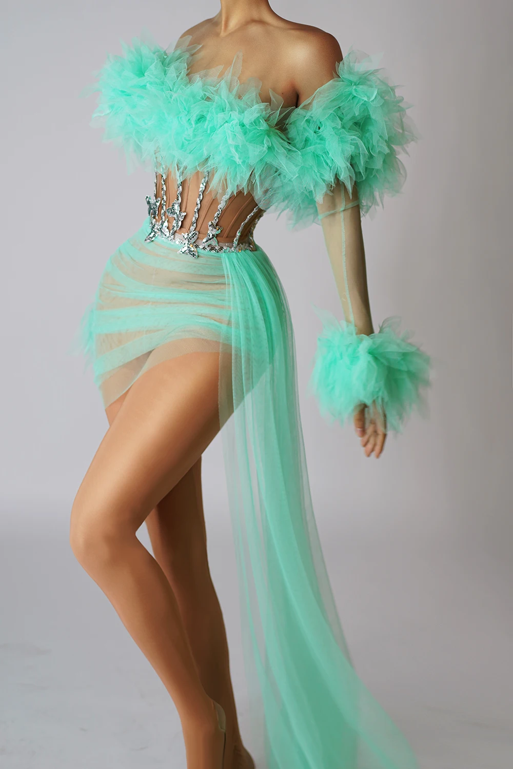 New Arrival Sequin Butterfly Decoration Women Homecoming Gowns Mint Green Short Prom Dresses 2024 with Side Train Xinshenlv