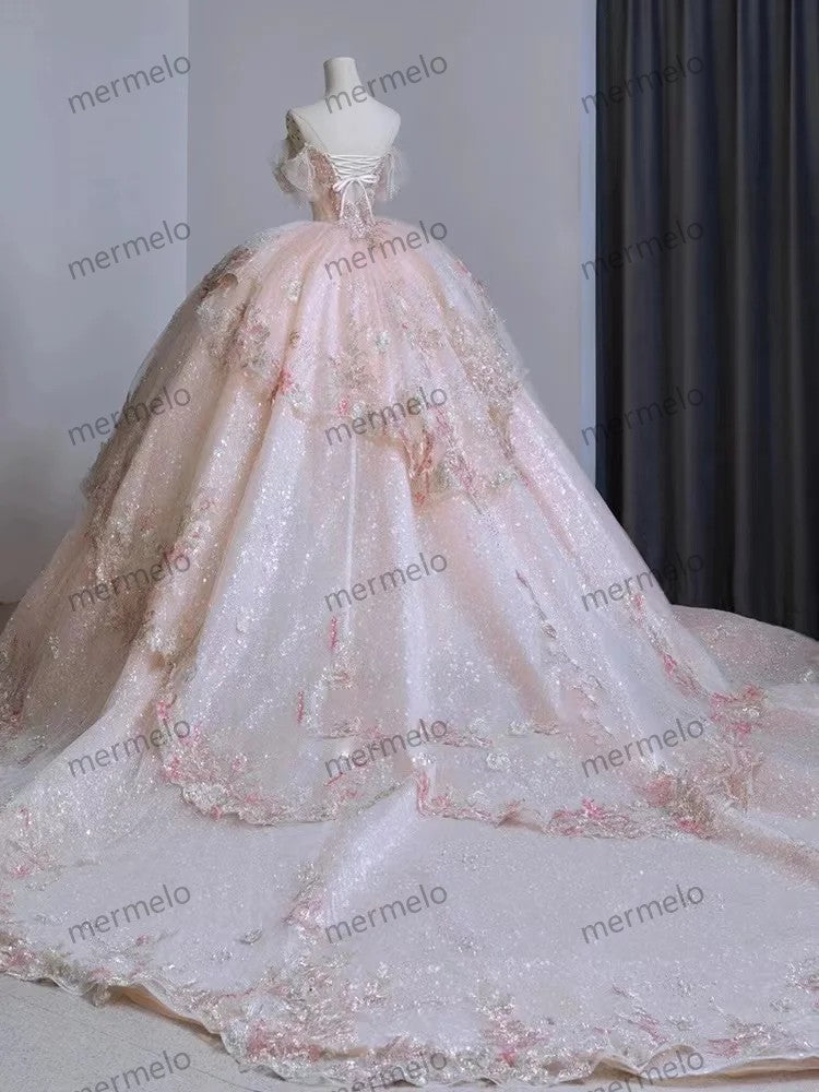 One Shoulder Dress New Heavy Industry Pink Large Tail Escape Princess Dress