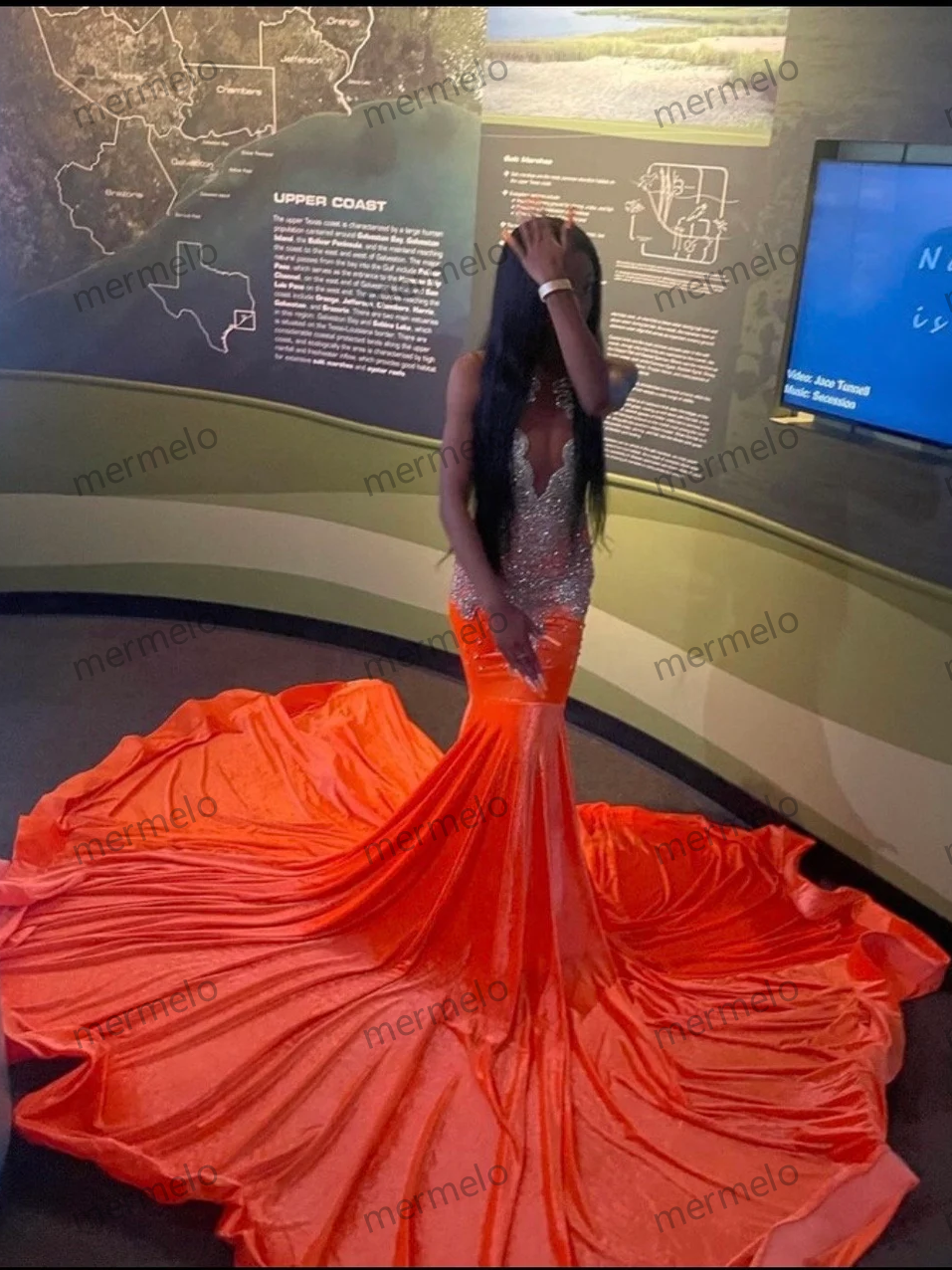 Orange long prom dress, sequins mermaid dress, wedding dress, party dress ,photo shoot dress, bridal dress