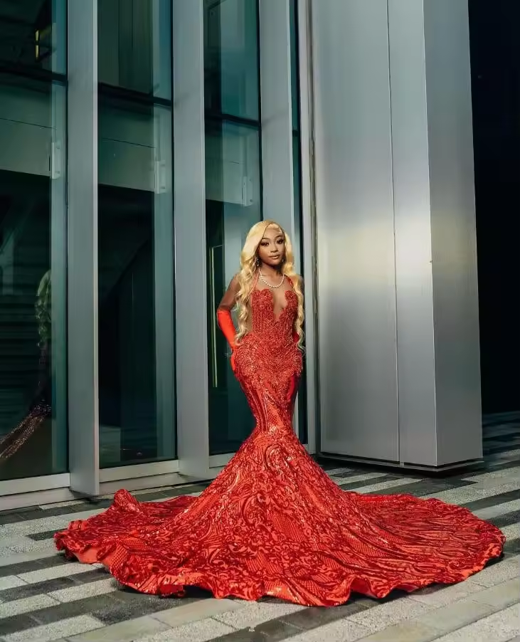 Red Sparkly Mermaid Long Prom Formal Party Dresses for Black Girl Luxury Gillter Diamond Evening Birthday Reception Dress Gala