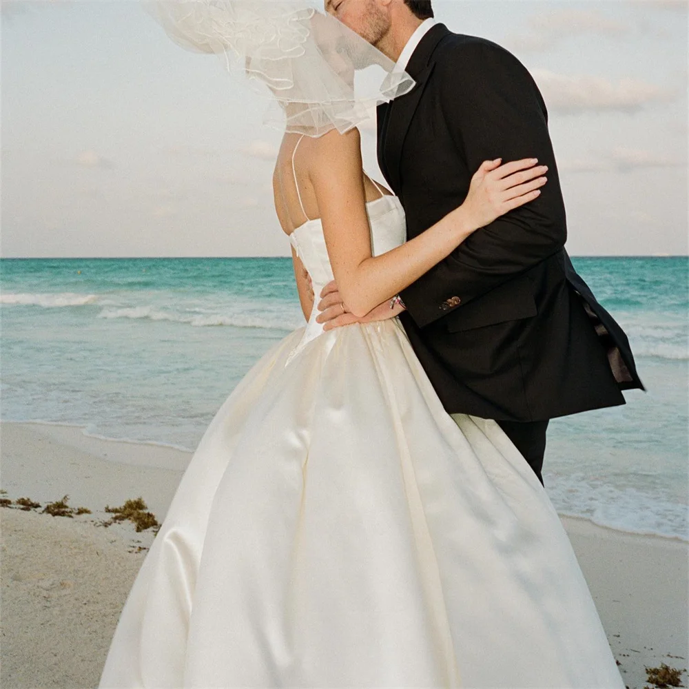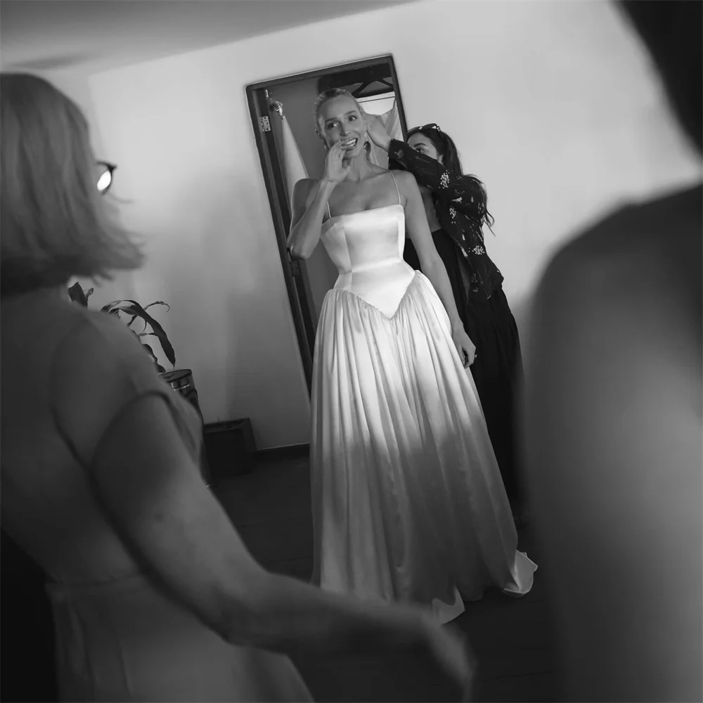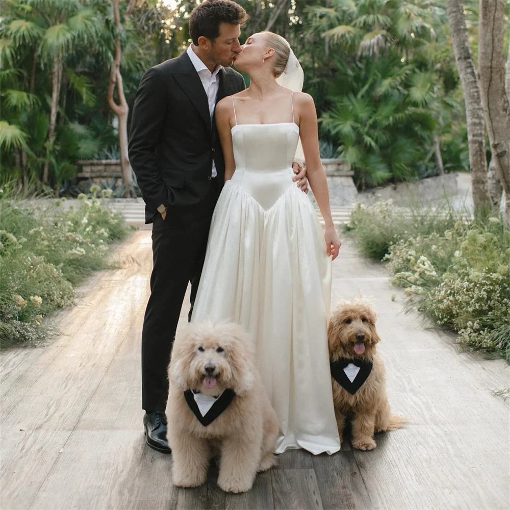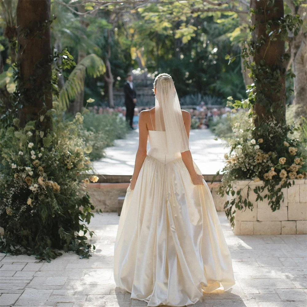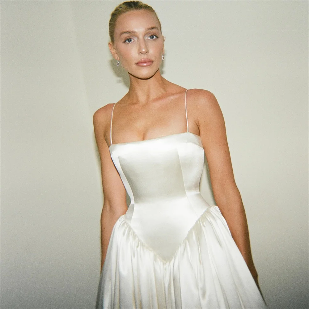 Real Photos Stunning Spaghetti Straps Soft Satin Wedding Dress For Bride 2024 Drop Waist Bridal Gown For Photography