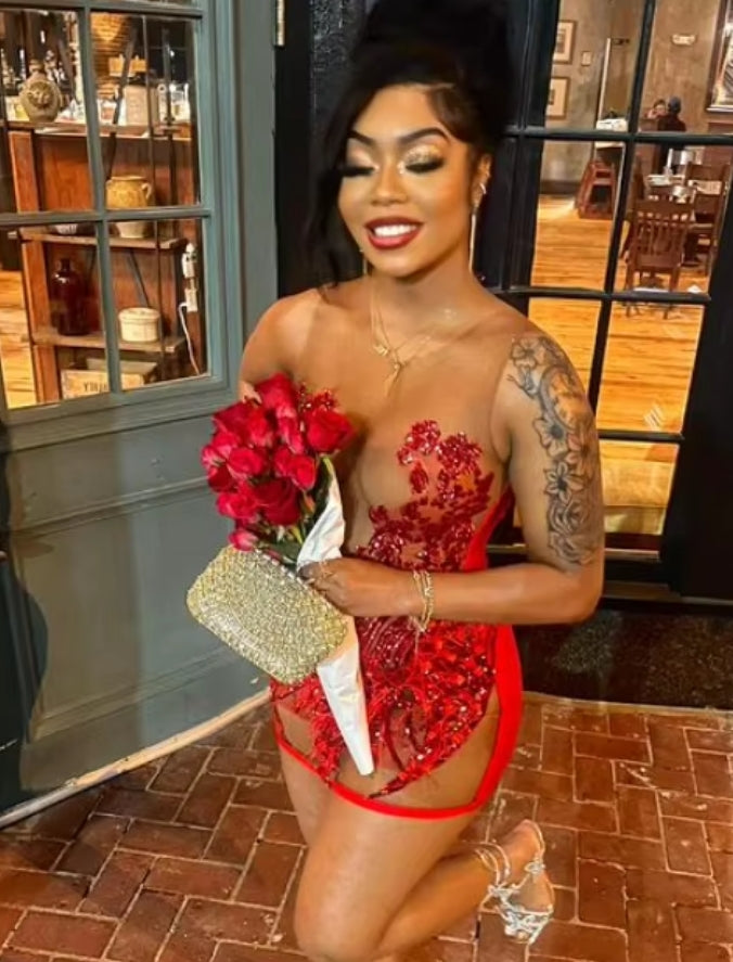 Red Exquisite Graduation Gowns 2024 Sexy See Through Sequins Feather Decoration Homecoming Gowns Black Girls Party Dresses