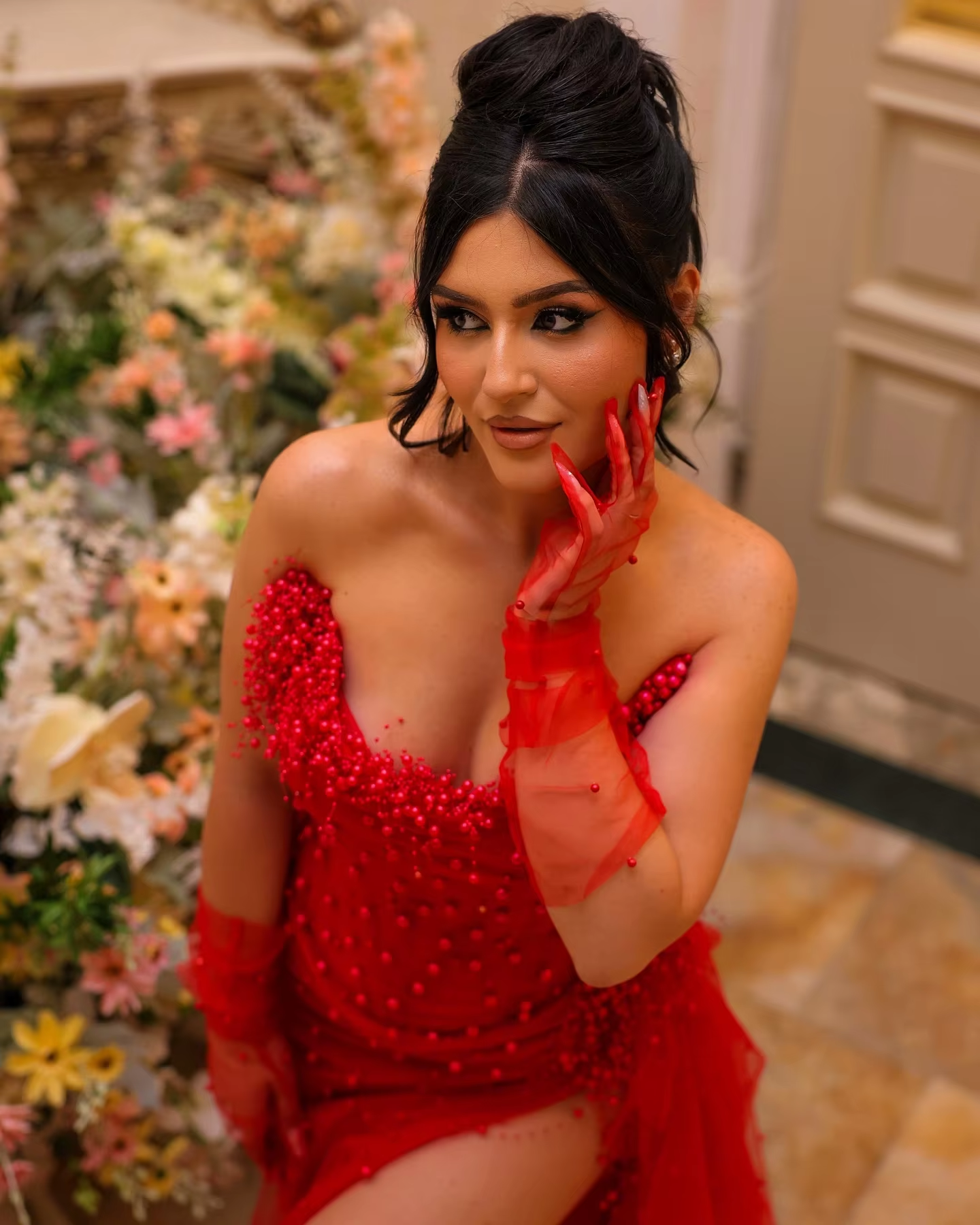 Red Pearls Asymmetrical Split Long Evening Dresses Sexy Strapless Evening Gowns Bridal Party Dress