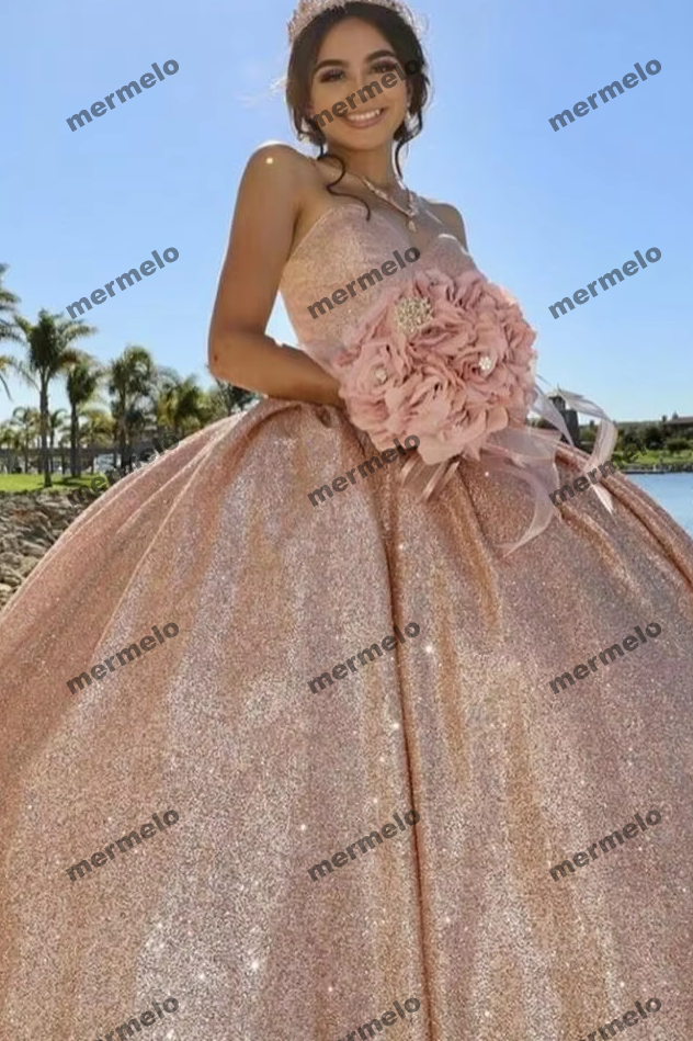 Rose Gold Quinceanera Dresses Sweetheart Sequins Sweet 15 16 Dress