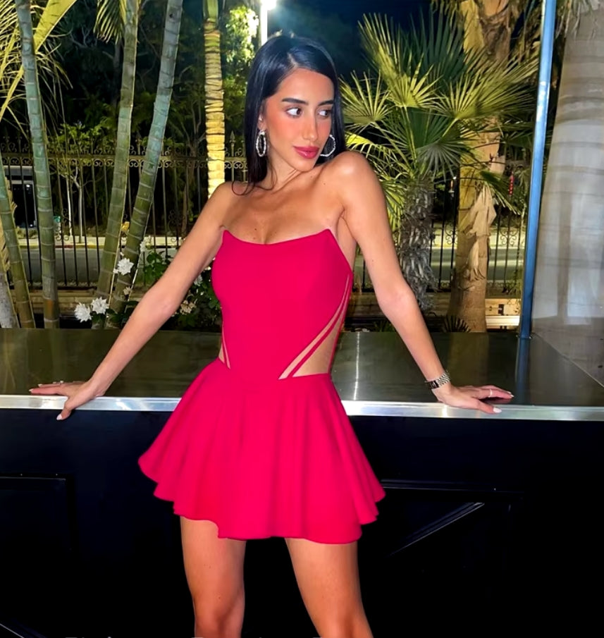 Sexy Mini A Line Cocktail Dresses Prom Gowns Club Night Dress See Through Short Israel Party Gowns