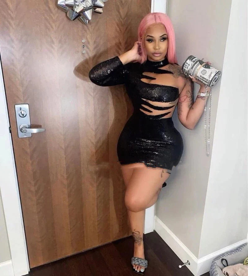 Sexy One Shoulder Black Cocktail Dress For Women Party Sequin Custom Made Short Prom Gowns One Shoulder Mini Evening Dress