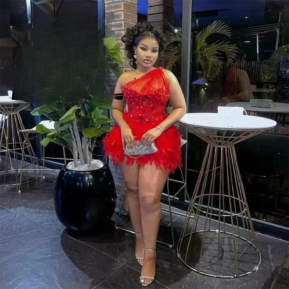 Sexy Red Short Prom Dress For Black Girls Beads Feathers Cocktail Dresses Formal Homecoming Customized