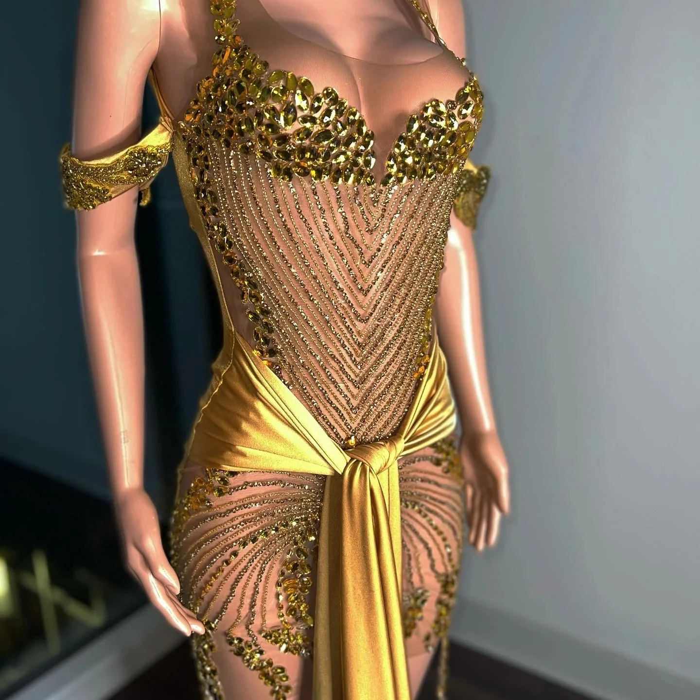 Sexy Sheer See Through Short Black Girl Prom Dress Gold Beaded African Cocktail Dresses Women Party Gowns Birthday Homecoming