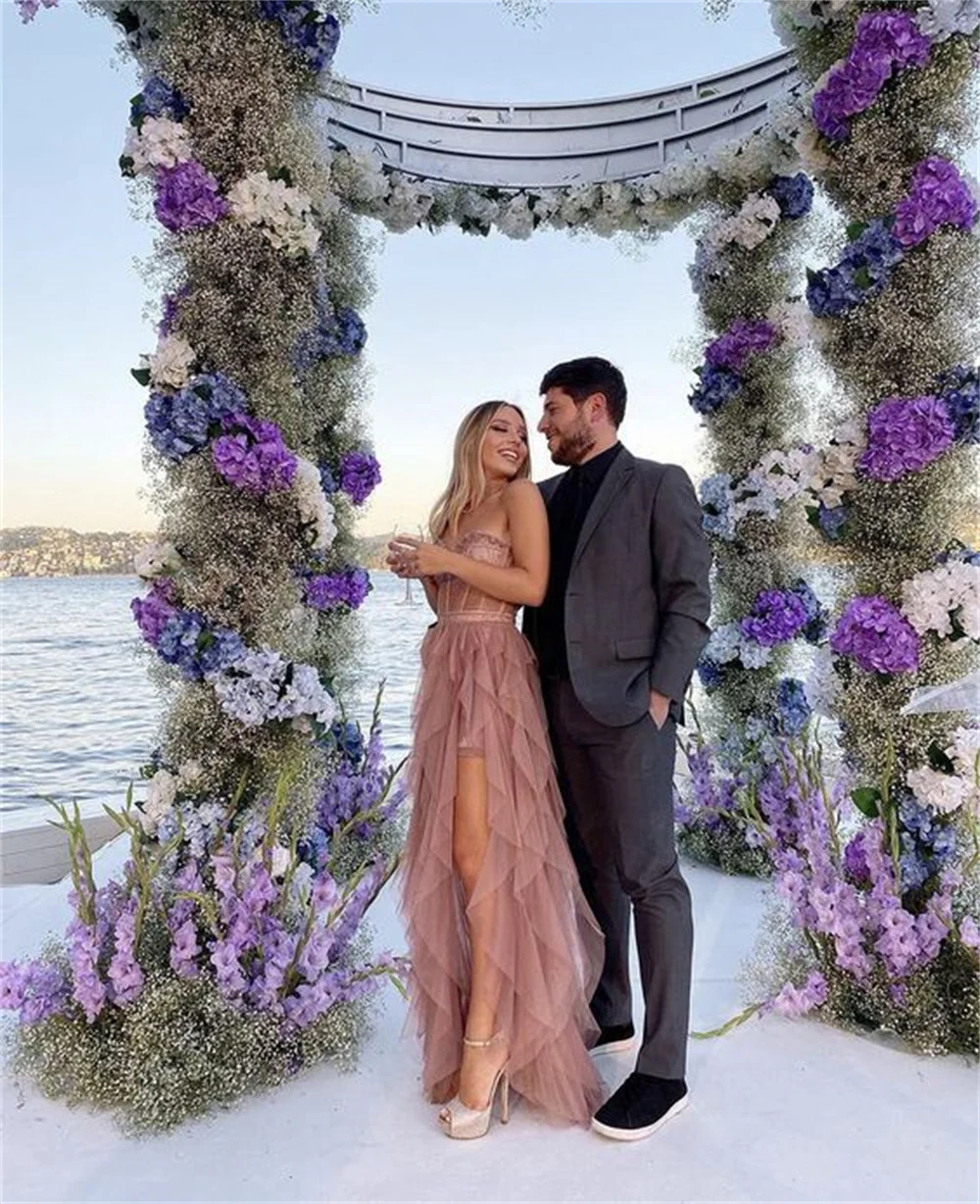 Sexy Tube Top Split Legs Fishbone Slim A-line Prom Dresses Elegant Floor Length Vestidos De Noche