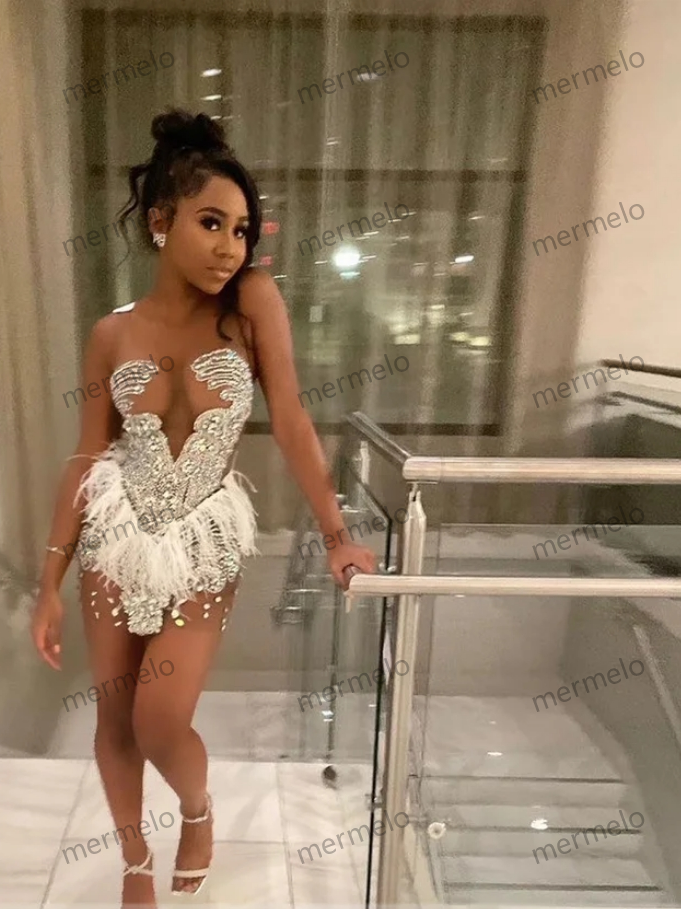 Sexy White Short Prom Dress Beading Crystal Diamonds Luxury Birthday Party Dress
