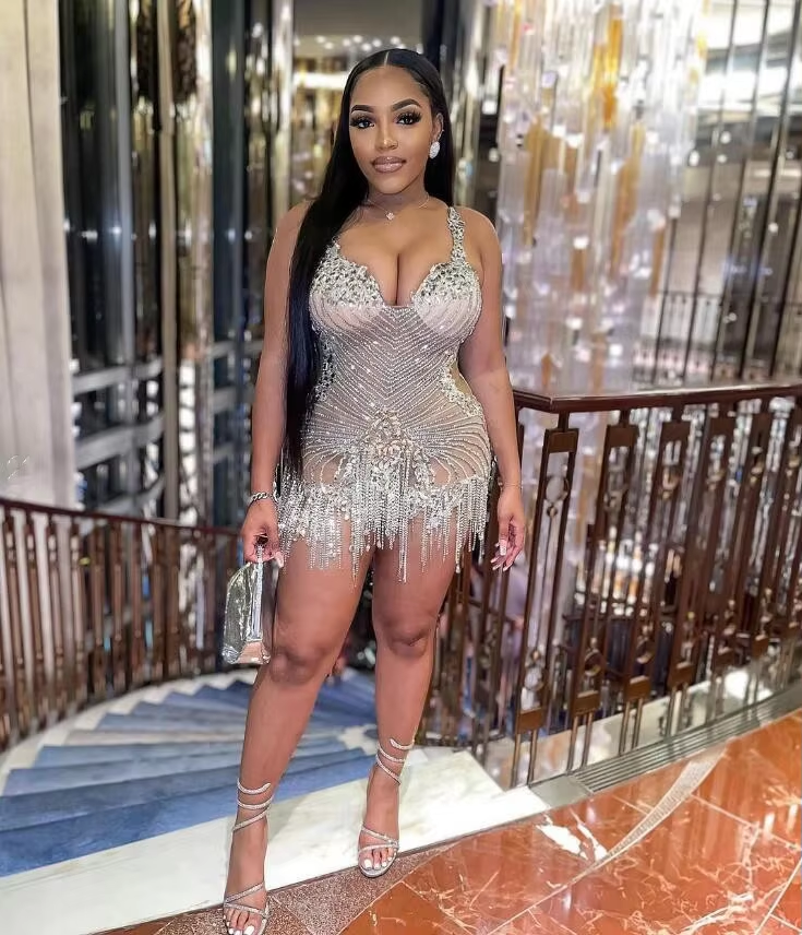 Silver Diamond Mini Cocktail Evening Dresses for Women 2024 Sparkly Luxury Crystal Tassel Black Girl Birthday Gala Prom Gown