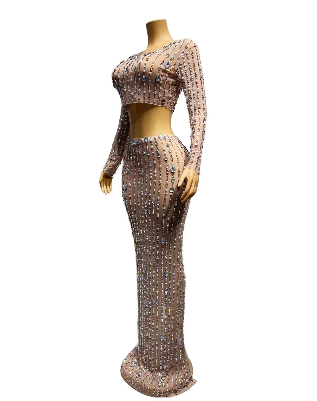 Shining Rhinestones Pearl Transparent Top SkirtBirthday Celebrate Dress Prom Party SingleSh
