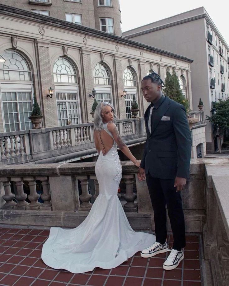 Shining Silver Mermaid Long Sleeves Prom Dress