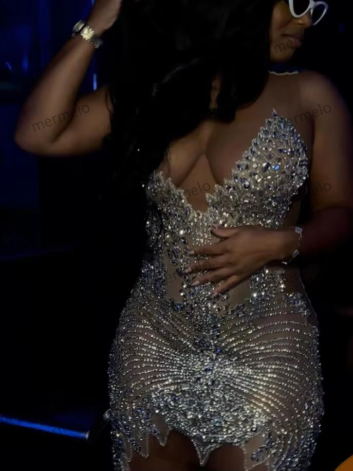 Short Prom Formal Dress Sparkly Crystal Diamond Sheer Mesh Mini Birthday Homomecing Gown
