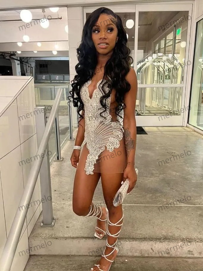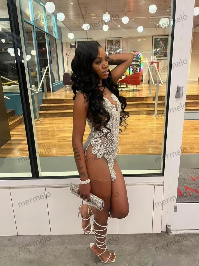 Silver Diamond Mini Evening Cocktail Dresses for Black Girl