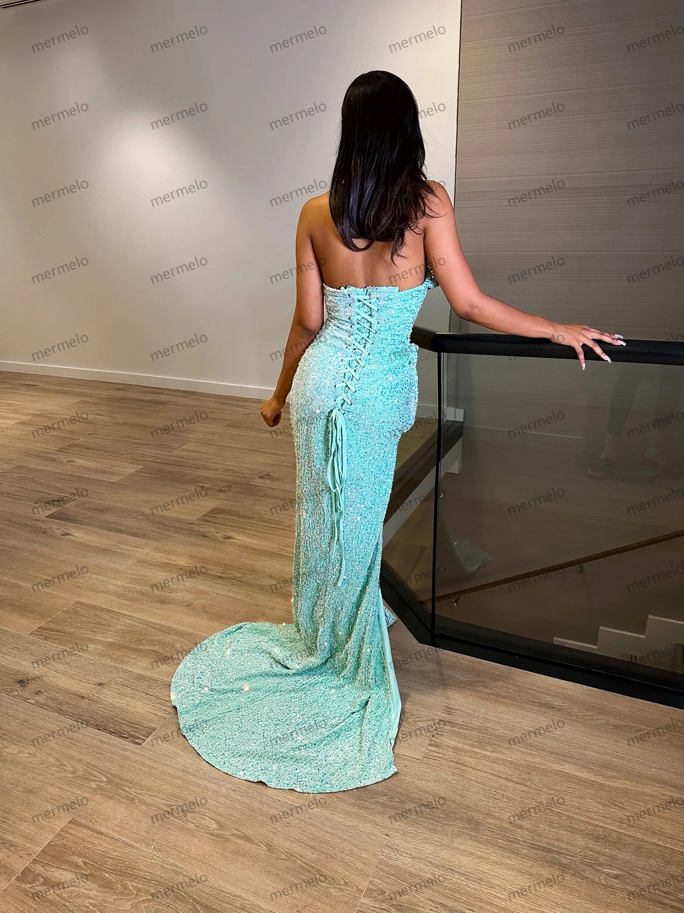 Sparkle South African Prom Dresses Sheath Sweetheart Sequins Slit Black Girls