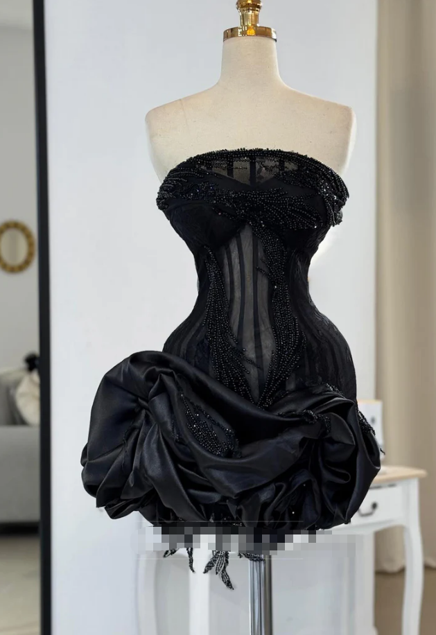 Straight Across Beaded Ruched A-Line Party Homecoming Dress