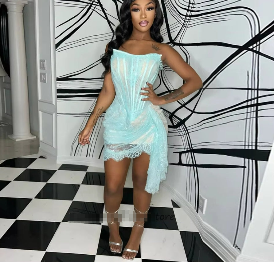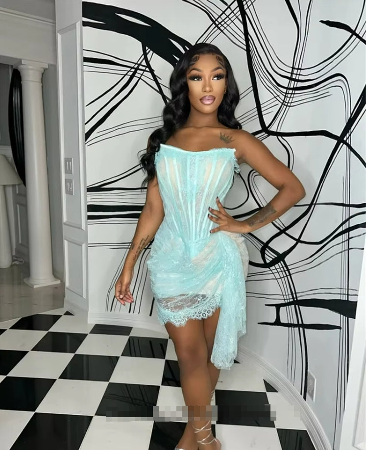 Strapless Short Full Lace Prom Party Dresses Sexy Corset Mini Cocktail Dress African Women Arabic Formal Evening Gowns