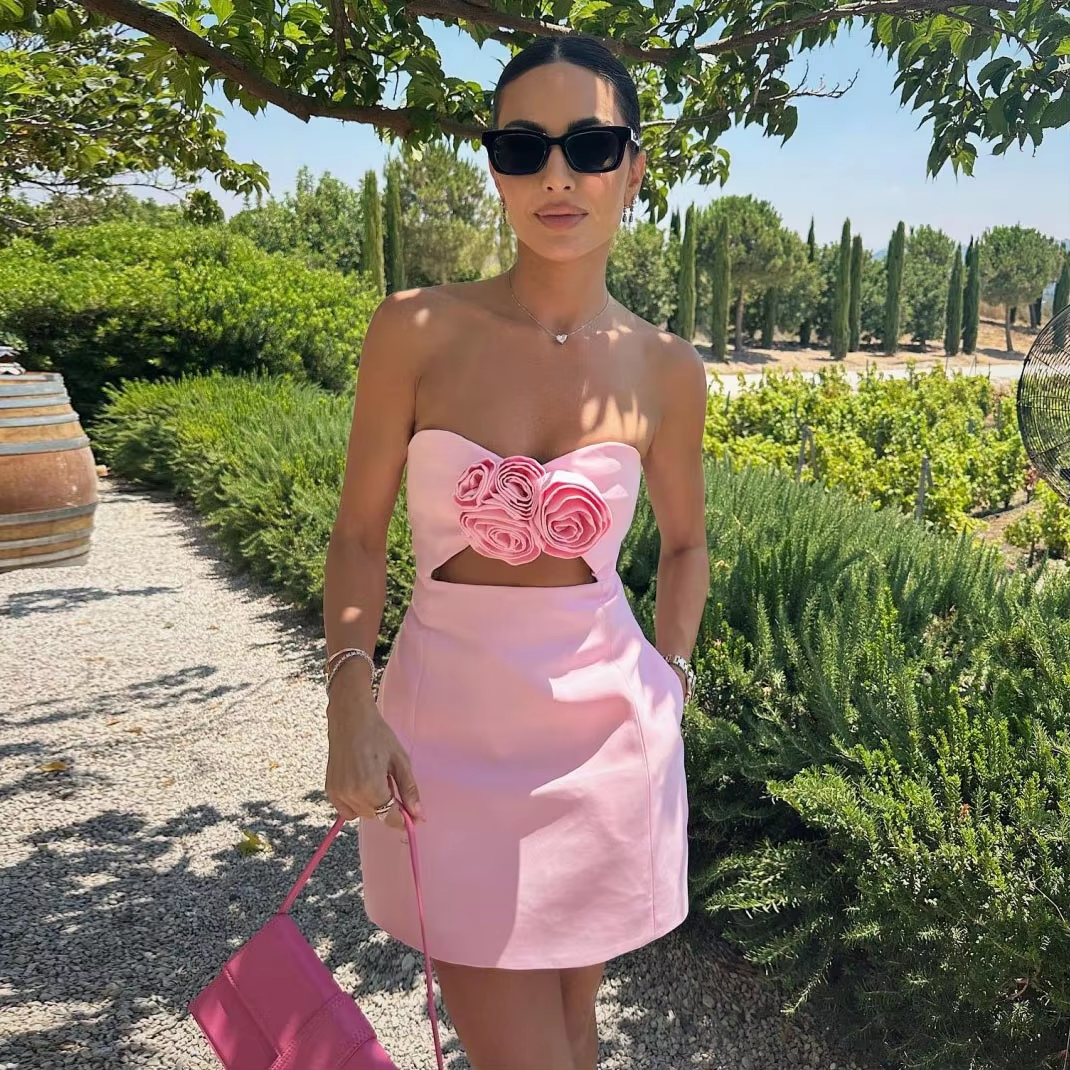 Sweetheart Light Pink Matte Satin Mini Party Dress Custom Made Floral Women Clothing Ever Pretty Hollow Out Cocktail Dresses