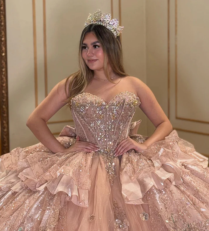 The tulle quinceanera dress with ball gown shape and features sweetheart design,adorned with lace sequin and beaded .Perfect for sweet train birthday parties or quinceaneras. Don't settle for ordinary, stand out in this stunning piece.